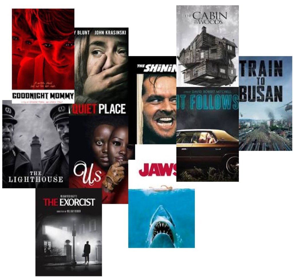 The movies listed in my Mood Board belong to the horror genre of film, where the objective is to frighten and thrill the audiences. The films listed in my mood board are all legendary horror films that define the term horror completely. Whether it be a rampaging murderer, a deadly shark, a supernatural phenomenon, or a horrifying disaster, these films tell a shocking and suspenseful story throughout. Through the utilization of horror techniques such as jump scares, dark lighting, suspenseful music, and angled cinematography, these films are capable of imbuing a sense of danger and fear into the audience.