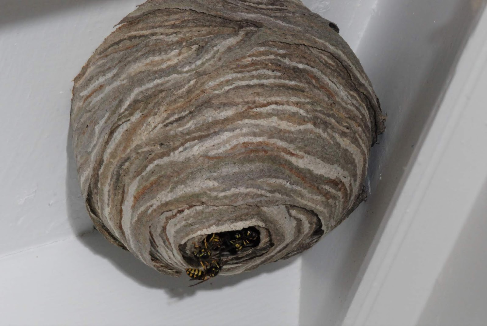 A shot of the hornets nest with wasps flying around is flashed on the screen. Loud noises of wasps are all that could be heard. Seconds later the title “The Hornets Nest” fades in and out.